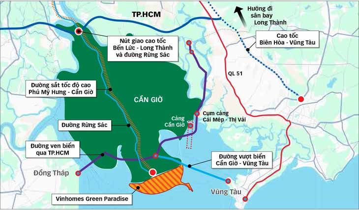 Hoặc từ trung tâm TP.HCM đi Vũng Tàu sẽ chọn lối đi qua Cần Giờ, từ ven biển miền Tây đi TP.HCM và Vũng Tàu cũng đi qua Cần Giờ, thay vì đi các tuyến đường vòng như hiện nay.
