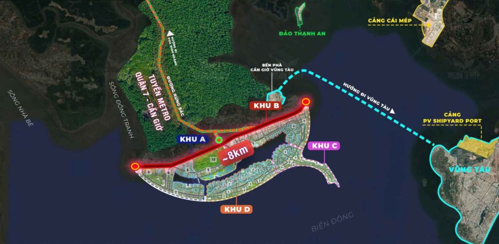 Hơn nữa, Đại lộ Thời Đại còn kết nối khu đô thị với đường Rừng Sác – trục huyết mạch nối trung tâm TP.HCM ra Cần Giờ. Đại lộ 120 m cũng là vị trí dự kiến đặt điểm cuối và depot của tuyến metro tốc độ cao 350 km/h, mở ra hành lang giao thông – thương mại – du lịch hiện đại bậc nhất phía Nam.